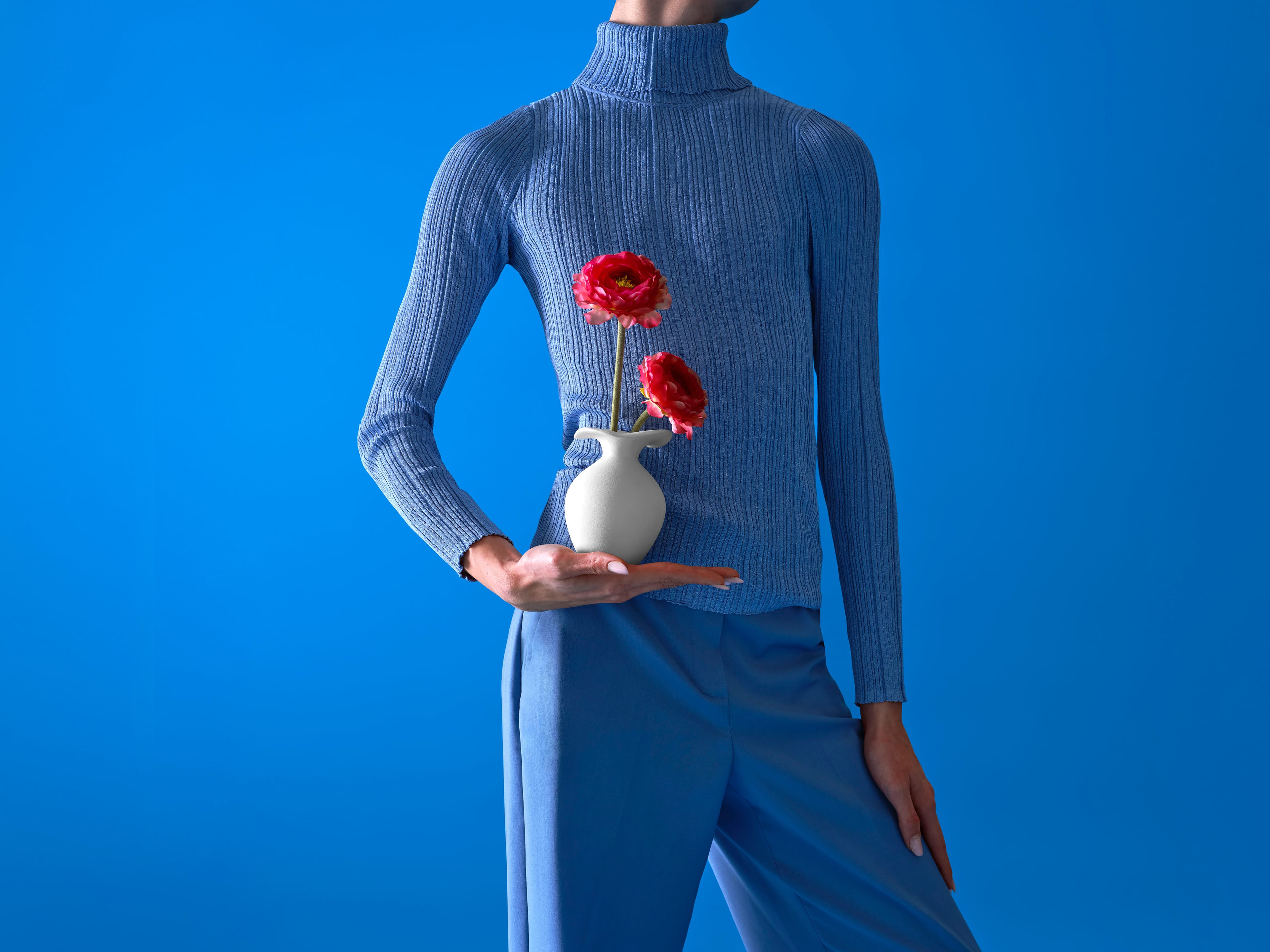 Bij Bloom & Wolf draait alles om complete bloemendesigns. Elk boeket wordt zorgvuldig afgestemd op een bijpassende vaas, zodat je een echte eyecatcher in huis haalt. Liever alleen een boeket? Geen probleem—combineer het met je eigen favoriete vaas en maak er jouw unieke statement van.