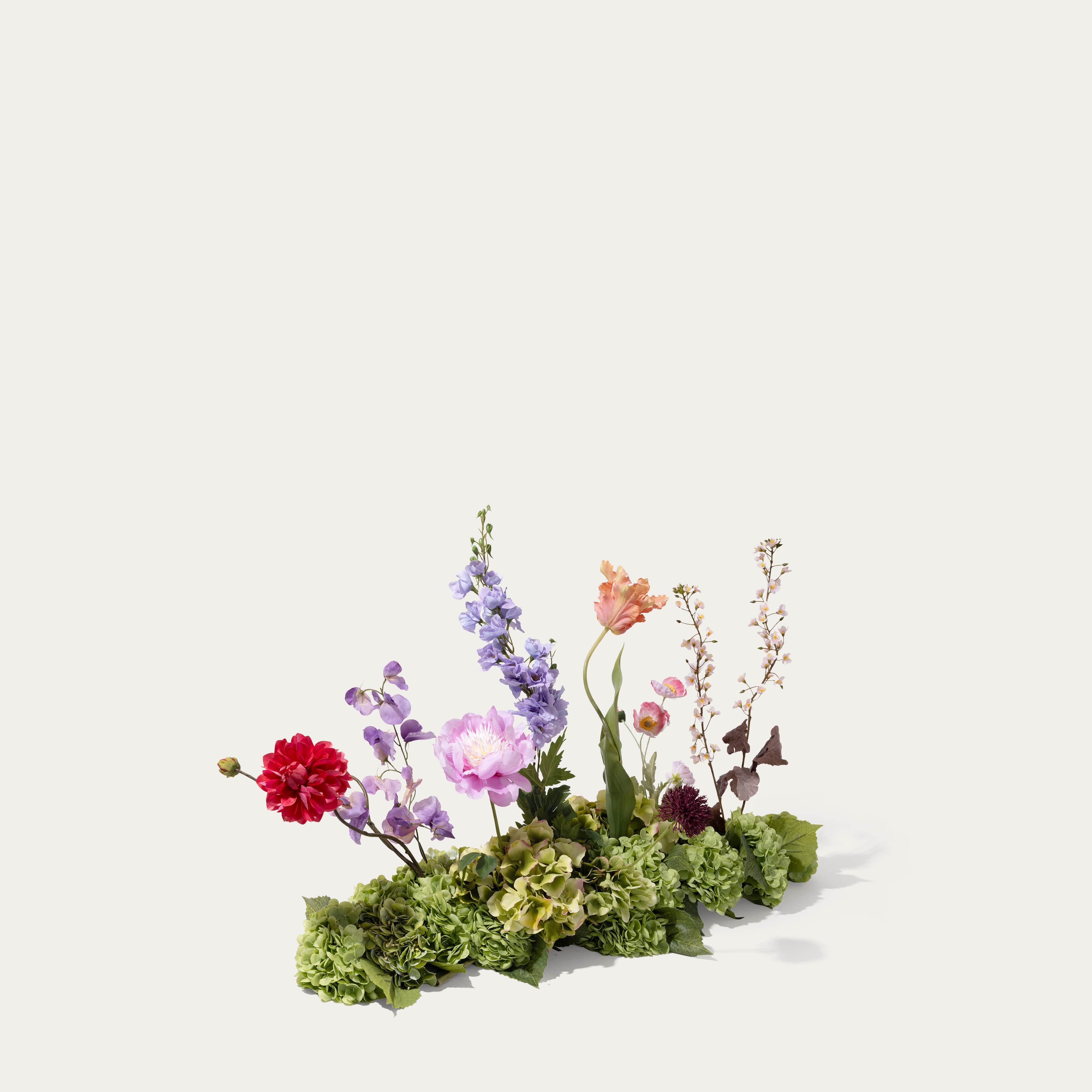 Een prachtig tafelstuk van real-touch hortensia’s: tijdloos, vol en elegant. Mooi op zichzelf, of verrijk hem met losse bloemen voor een persoonlijk accent. Dit boeket wordt geleverd met ons gratis bloemparfum.